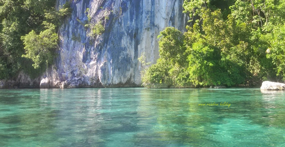 HARI-2 : HOMESTAY - MATA AIR BELANDA - TEBING BATU - GOA LAUT - ORA BEACH - PULAU RAJA (B) (L) (D)
