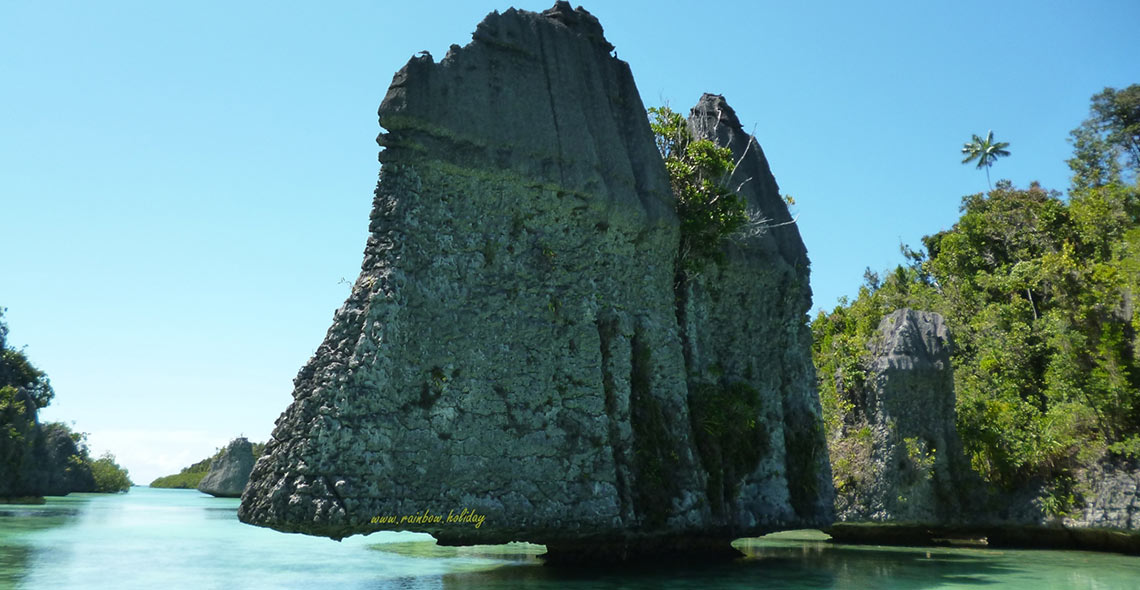 Raja Ampat terletak di ujung barat laut dari “Kepala Burung” semenanjung di Pulau New Guinea di Indonesia, propinsi Papua Barat ( Papua Barat ) - yang sebelumnya dikenal dengan nama Irian Jaya. Raja Ampat, adalah sebuah kabupaten baru yang terpisah dari Kabupaten Sorong, terdiri dari empat pulau utama yaitu Misool, Salawati, Batanta, dan Waigeo, dan pulau yang lebih kecil yaitu Kofiau.